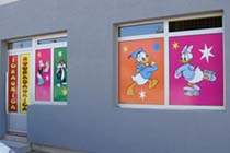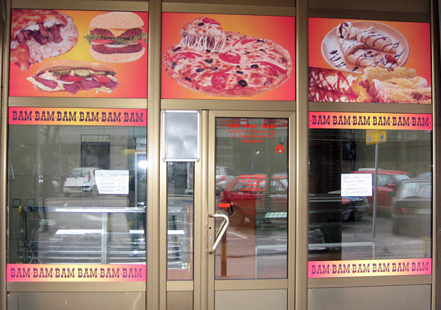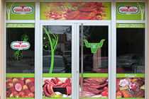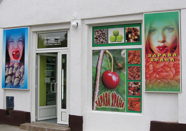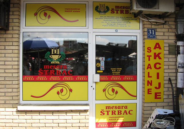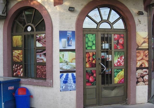 Danas je ovaj vid reklame gotovo neizbežan. Zna se da je zakonom obavezno isticanje firme i radnog vremena kao i još nekih detalja, tako da se grafikom na vratima i izlogu to najjevtinije rešava. Apliciranjem stakla na Vašem izlogu moguće je postići niz efekata. Prvo dobru uočljivost vaših proizvoda i usluga, zatim sprečavanje direktnog uticaja sunčevih zraka (ako je to potrebno), dobijanje intimnijeg, prijatnijeg poslovnog prostora na mestima gde su velike staklene površine itd. Na mestima gde su mali izlozi, obično se koristi katovana PVC folija, tako da je poruka preneta, a još uvek je moguće videti izložene proizvode. Kada je potrebno obezbediti diskreciju u lokalu a vidljivost ka spolja, tada koristimo perforiranu plotovanu PVC foliju. Sa specijalnim folijama koje imaju efekat peskiranog stakla, moguće je zatvarati cele površine ili u kombinaciji sa drugim raznim folijama dobiti veoma zanimljive forme.