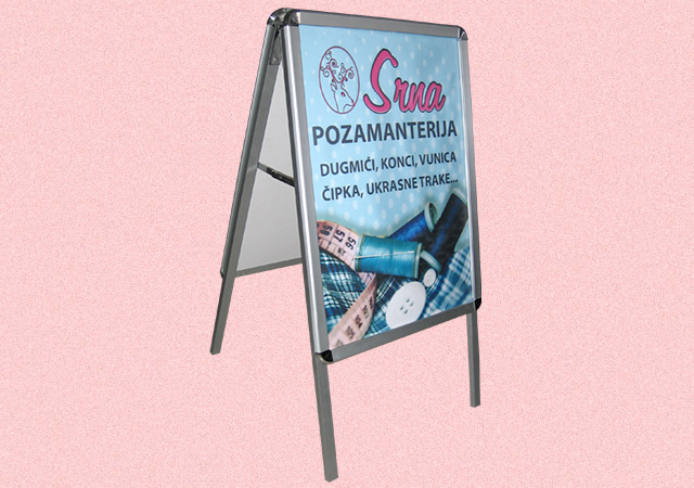 Kada je potrebno postaviti putokaz na trotoar, istaći nekakvu prodajnu akciju ili jednostavno imati mobilnu reklamu tu su naše "A" ili obrnuto "T" table.