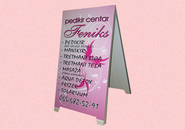 Kada je potrebno postaviti putokaz na trotoar, istaći nekakvu prodajnu akciju ili jednostavno imati mobilnu reklamu tu su naše "A" ili obrnuto "T" table.